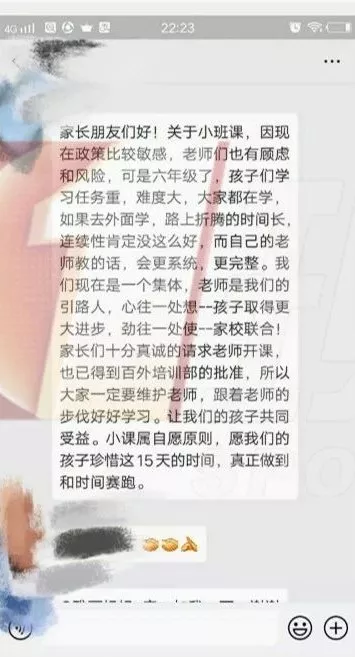 而這個(gè)所謂的小課,雖然名義上是“家長自愿”,但老師都放話了,玩得又是“群上接龍”這種“明牌游戲”,又有哪個(gè)家長敢公開不給老師面子呢?