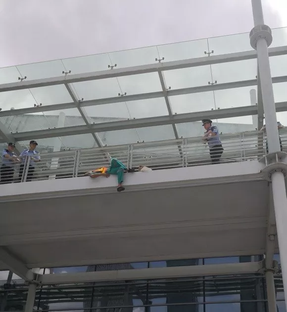 “阿伯,您先上來(lái),別沖動(dòng)!我們是警察,遇到什么困難跟我們說(shuō),我們盡量幫您解決!”吳第警官和緩地對(duì)男子說(shuō)。然而男子并不配合,甚至在外欄桿上躺下了。這個(gè)舉動(dòng)讓在場(chǎng)的所有人都倒吸了一口冷氣。
