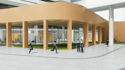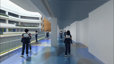 規(guī)劃采用了S型的布局關(guān)系,初中部和小學(xué)部各置一側(cè),各自有相對獨(dú)立的院落空間的同時(shí),能夠照顧到空間的流通性,使得二者能夠方便地共享公共教學(xué)設(shè)施。