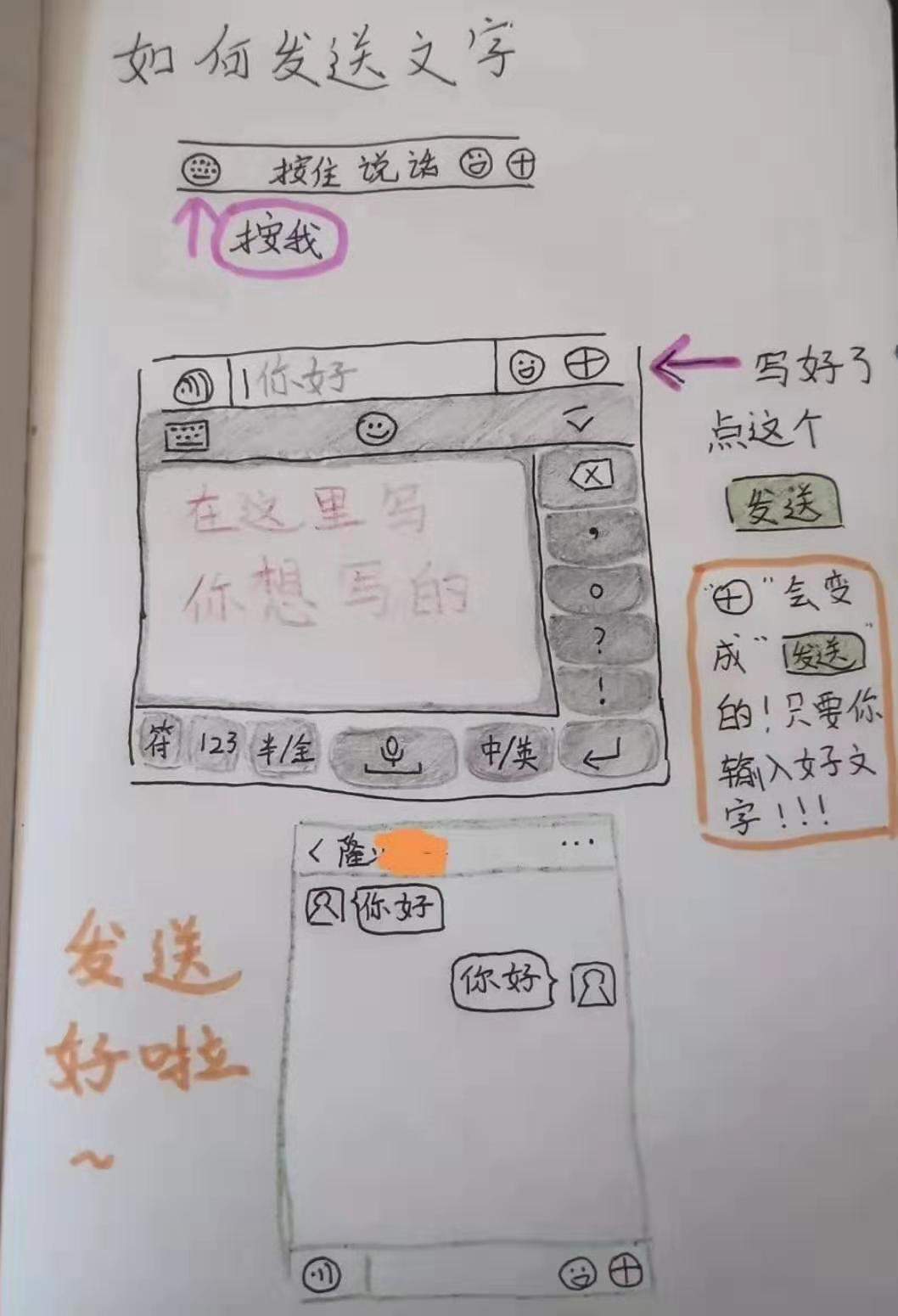 這是其侄女隆沂珊為了教會(huì)奶奶使用社交軟件特別畫(huà)的。圖文并茂地記錄了如何發(fā)送語(yǔ)音、如何發(fā)送文字等等,十分通俗易懂。