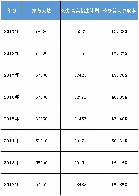 針對(duì)網(wǎng)友抱怨的,公辦普高的錄取率問(wèn)題,小編手工統(tǒng)計(jì)了近8年來(lái)的普高招生計(jì)劃,部分?jǐn)?shù)據(jù)可能有出入,僅供參考。