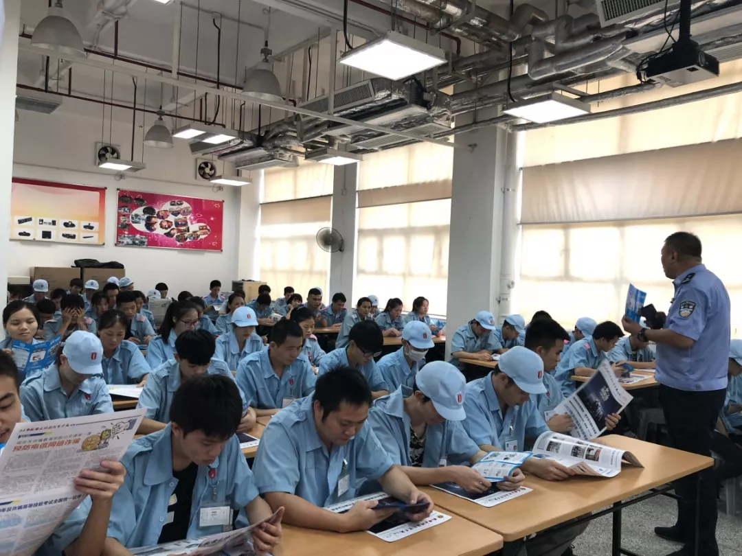 同時,反詐騙教育學院公開課走進梅林派出所轄區(qū)成豐電子廠,由反詐騙教育學院專職講師為廠里近500位員工普及反詐知識,并且組織工友們閱讀反詐騙教育學院???,提高他們的反詐騙意識。