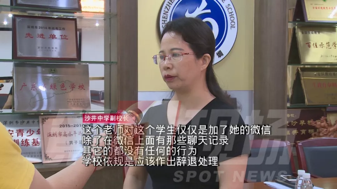 為詳細(xì)了解實際情況,記者來到了李先生女兒就讀的沙井中學(xué),學(xué)校的副校長出面回應(yīng)稱,李先生反映的老師騷擾他女兒的情況確實存在,當(dāng)事人屬于臨聘教師,去年9月到該校任教,目前已經(jīng)被校方開除。