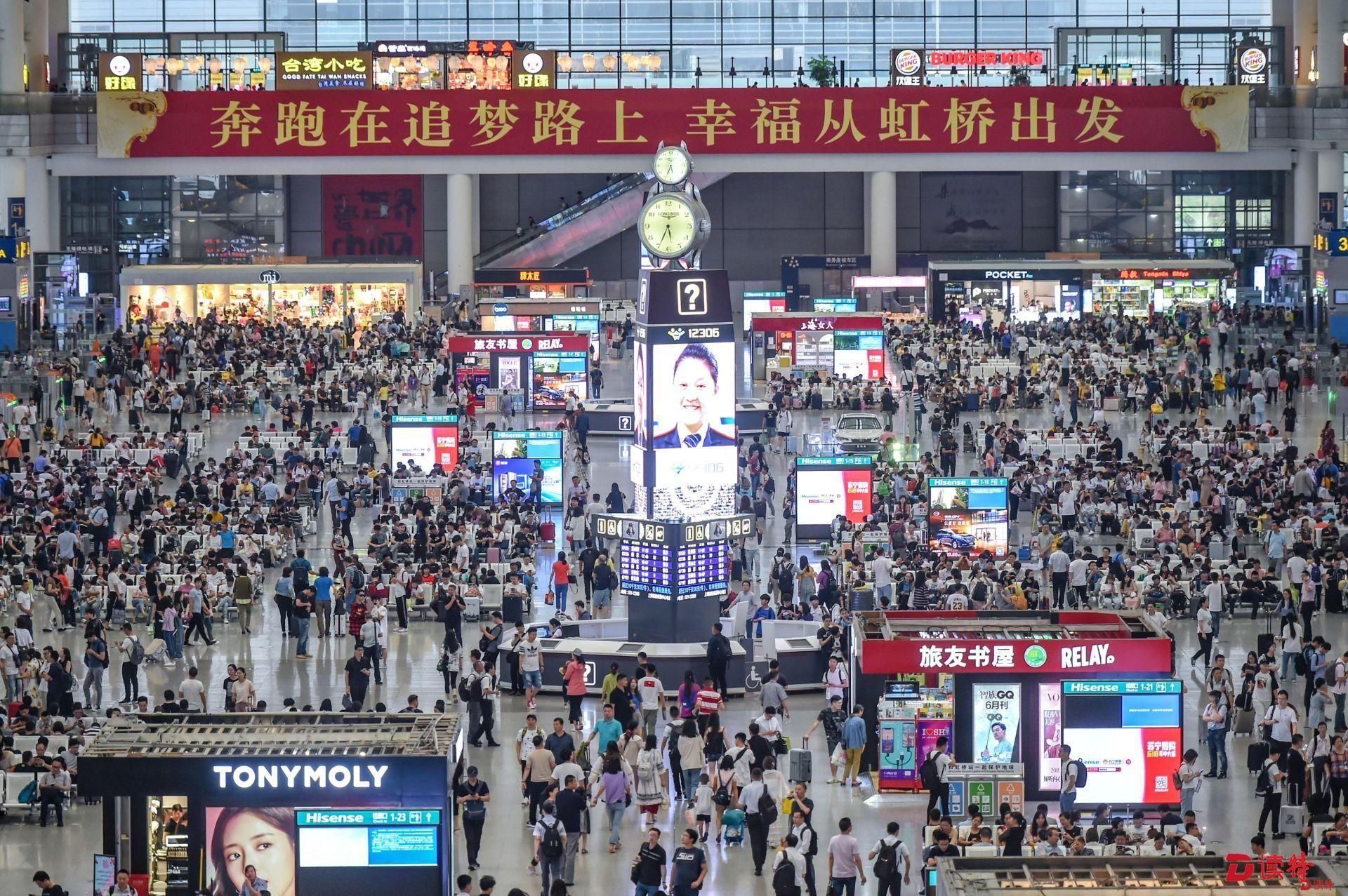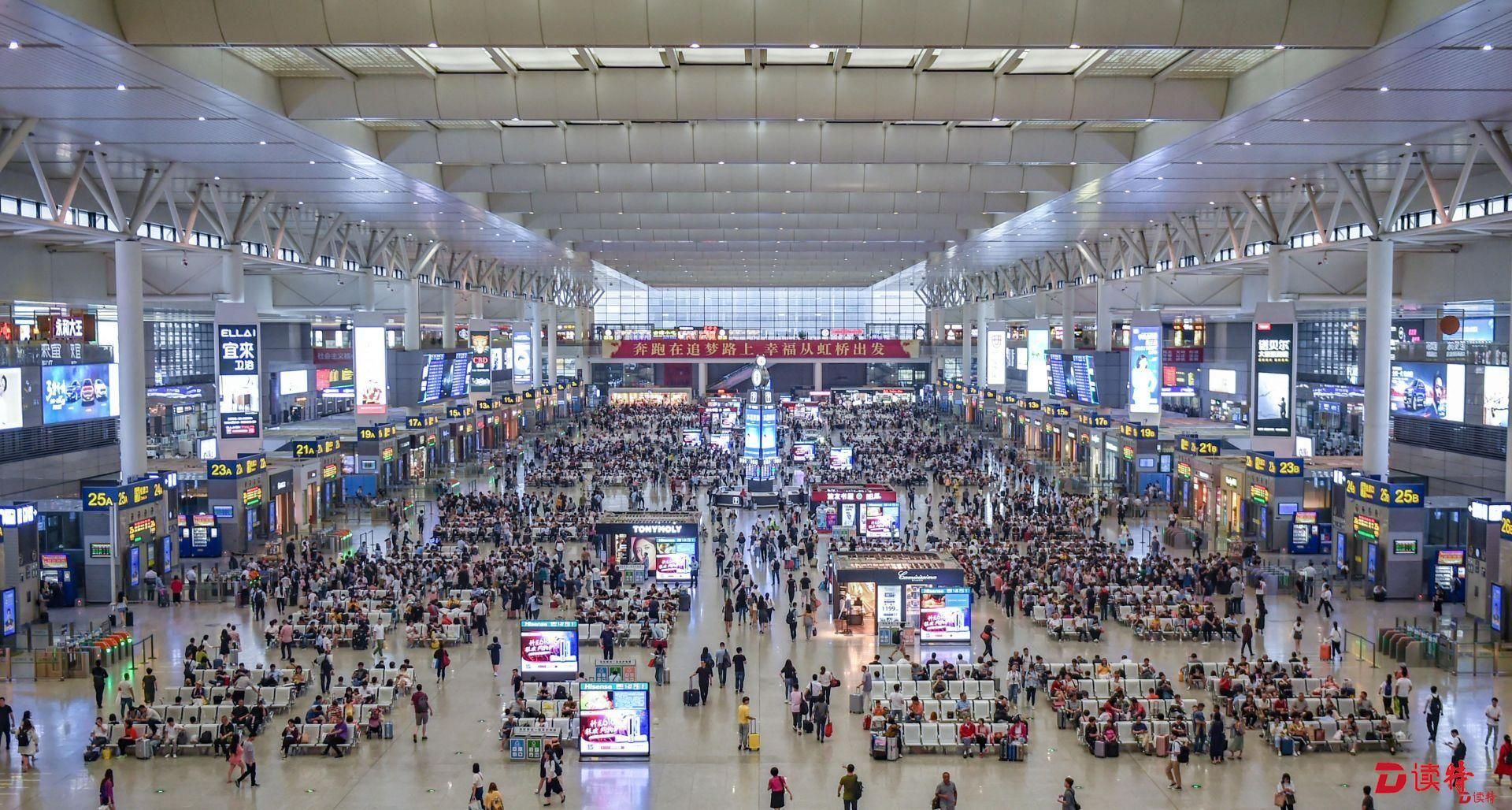 虹橋站是京滬、滬寧、滬杭三線高鐵的交會(huì)點(diǎn),日均到發(fā)旅客40萬(wàn)人次。