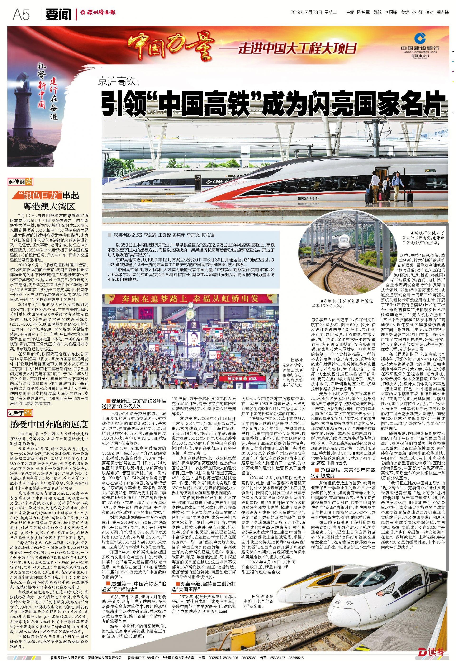 乘坐高鐵馳騁在祖國(guó)大地上,記者實(shí)實(shí)在在感受到了中國(guó)奔跑的速度,民族復(fù)興的力量。以京滬高鐵為代表,“復(fù)興號(hào)”在崇山峻嶺中穿行,帶動(dòng)沿線交通格局全面升級(jí),北京到上海最快運(yùn)行時(shí)間由10小時(shí)縮短至4個(gè)多小時(shí);構(gòu)建活力四射的“高鐵經(jīng)濟(jì)”長(zhǎng)廊,中國(guó)兩大經(jīng)濟(jì)圈之間架起了客流、物流等的快速通道,拉動(dòng)了區(qū)域經(jīng)濟(jì)社會(huì)快速發(fā)展和民生改善;其設(shè)計(jì)、建設(shè)、運(yùn)營(yíng)、管理經(jīng)驗(yàn),不斷為世界高鐵發(fā)展貢獻(xiàn)“中國(guó)方案”“中國(guó)智慧”。