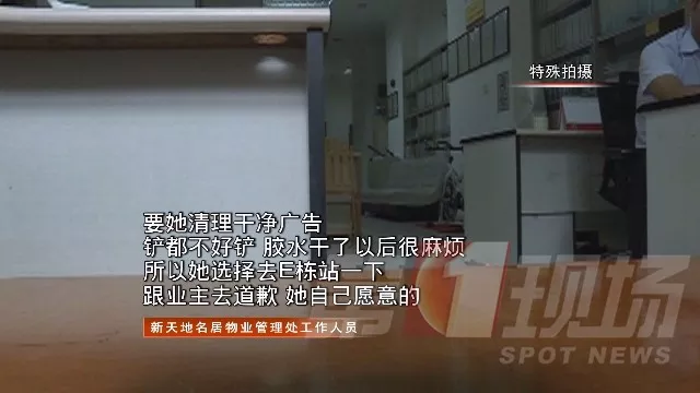 因?yàn)閺堎N的廣告過多,處理起來繁瑣且工作量很大,該名女子最后自己選擇了對業(yè)主和住戶們進(jìn)行舉牌道歉。