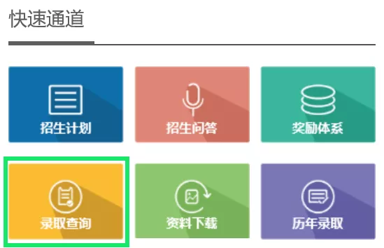滾動鼠標(biāo)下拉找到位于頁面右側(cè)的快速通道,點(diǎn)擊“錄取查詢”。
