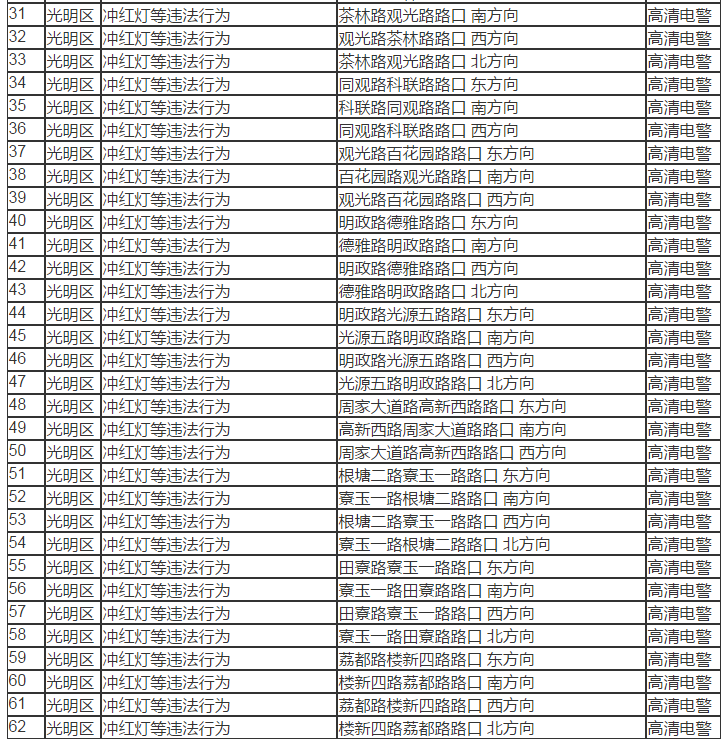 此次194套“電子警察”分布共涉及三個區(qū),分別是寶安區(qū)、光明區(qū)、龍崗區(qū)