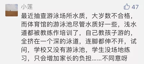 那么關(guān)于家長(zhǎng)們對(duì)于學(xué)校開(kāi)游泳課的呼吁,