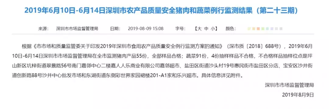 豬肉和蔬菜例行監(jiān)測結(jié)果