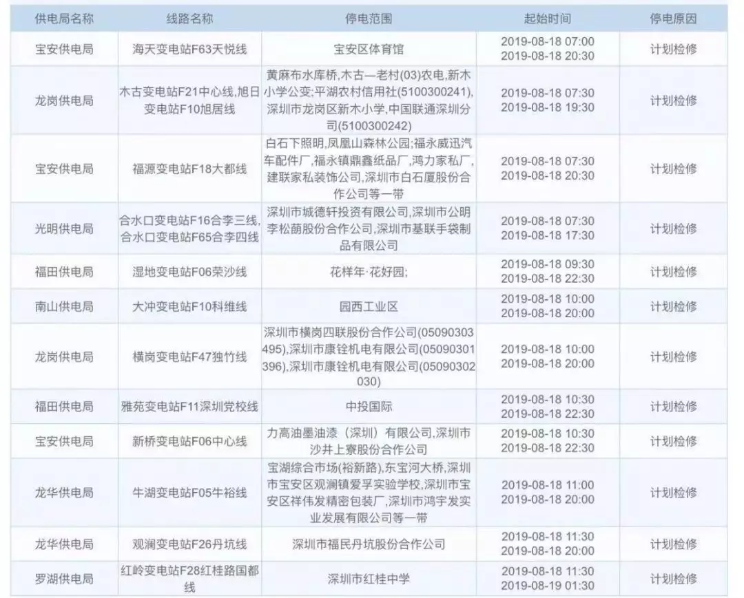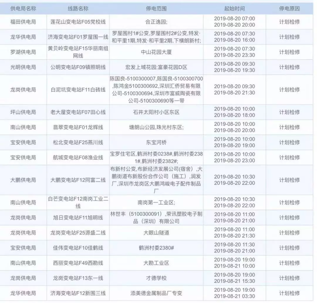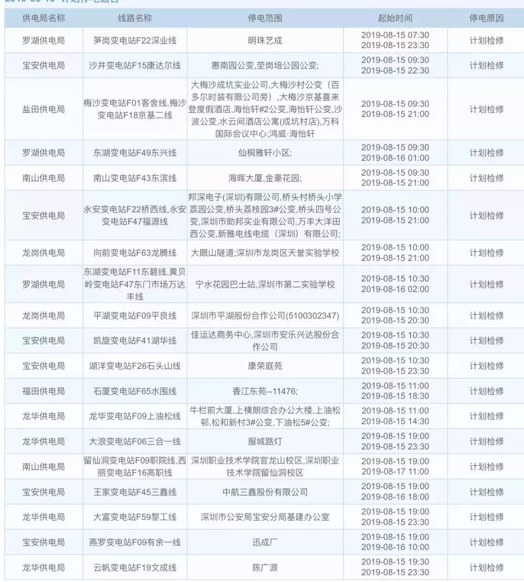 據(jù)中國南方電網(wǎng)信息,接下來這幾天深圳這些地方計(jì)劃停電,快看看有沒有你們家。