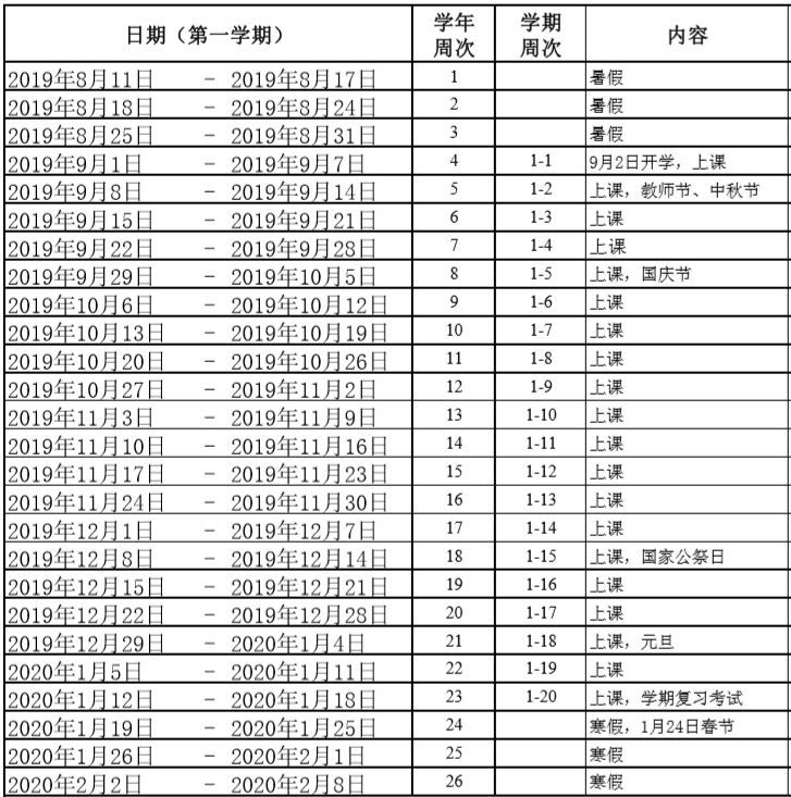 2019——2020 學(xué)年義務(wù)教育學(xué)校校歷
