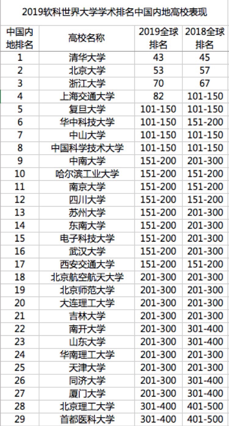 清華大學在中國內(nèi)地排名最高,位列全球第43名。上海交通大學的進步尤其引人注目,今年首次躋身全球百強,位列全球第82位,上海交通大學也成為繼清華大學、北京大學和浙江大學之后進入全球百強的第四所中國大學。復旦大學、華中科技大學、中山大學和中國科學技術大學排在全球101-150名。中南大學、蘇州大學、東南大學、電子科技大學和武漢大學首次進入世界200強。南開大學、山東大學、同濟大學首次進入世界300強。深圳大學、南方科技大學、青島大學、福州大學、鄭州大學、南昌大學、江蘇大學、暨南大學今年首次入圍全球500強。上??萍即髮W、廣東工業(yè)大學等13所大學首次進入全球1000強。