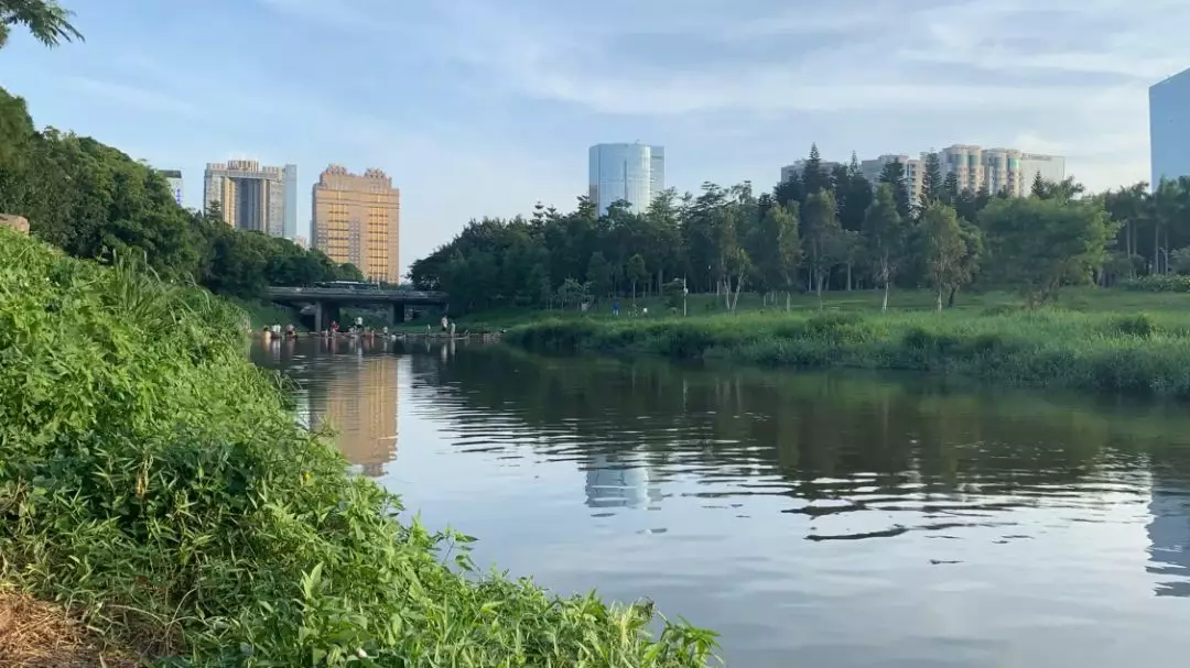 如今在福田河邊,隨處可見前來散步休閑的市民,人們橋上看風景,橋下賞魚游。在這清澈的河水邊,可以盡情與大自然親密擁抱,在繁華都市里找到了詩意的生活。