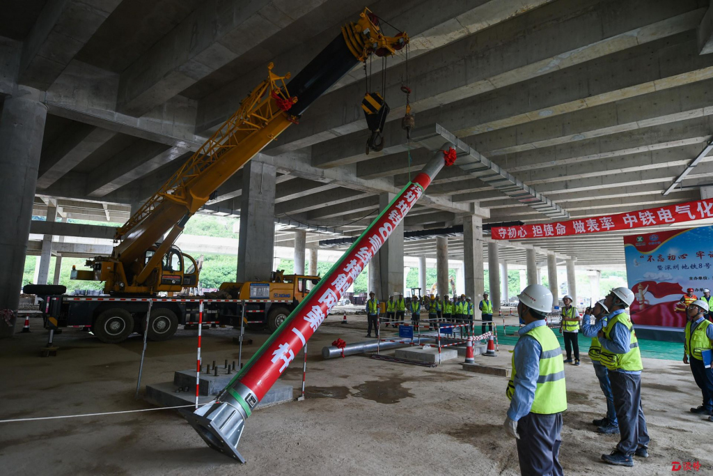 深圳特區(qū)報2019年8月17日訊 8月16日,地鐵8號線一期工程立起接觸網(wǎng)第一桿,拉開了全線系統(tǒng)設(shè)備安裝施工序幕。