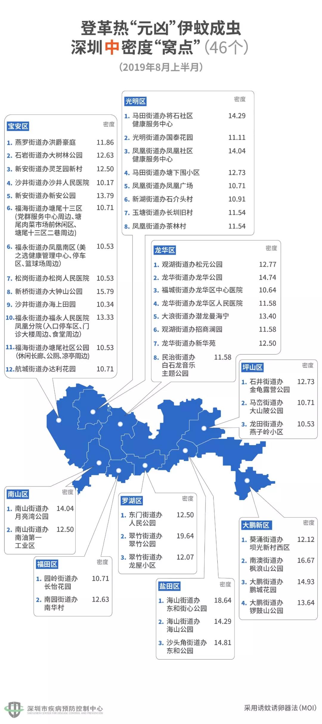 見圳客戶端·深圳新聞網(wǎng)2019年8月21日訊(見圳客戶端·深圳新聞網(wǎng)記者 劉夢婷 通訊員 深疾控)深圳市疾控中心最新發(fā)布的登革熱指數(shù)為II級(2019年8月8日至9月4日),提示本市登革熱感染風(fēng)險較高。進入登革熱流行季節(jié),這時候我們要做的,就是趕緊看看自己周圍有哪些伊蚊窩藏的“黑點”!8月21日,深圳市疾控中心發(fā)布了一份最新的“蚊子窩”地圖。