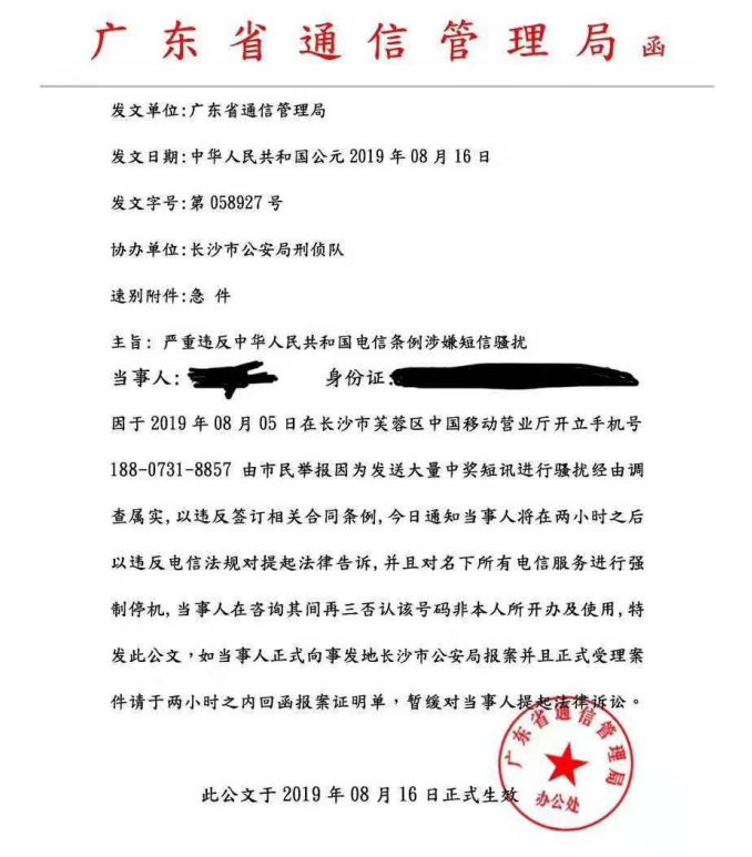 坪山坑梓轄區(qū)李女士接到一個(gè)自稱是廣東省通信管理局的電話,告知她的手機(jī)號(hào)碼涉嫌發(fā)送大量騷擾信息被人舉報(bào),現(xiàn)由長沙市公安局立案調(diào)查。