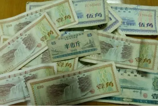 村民張阿婆珍藏至今的外匯券和糧票。