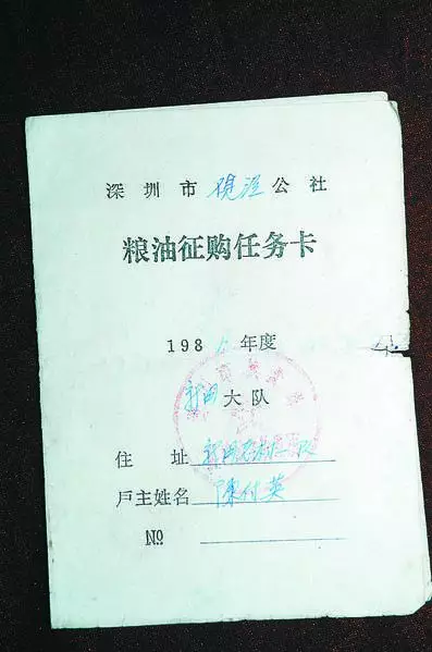 1981年,深圳市觀瀾公社糧油征購任務(wù)卡