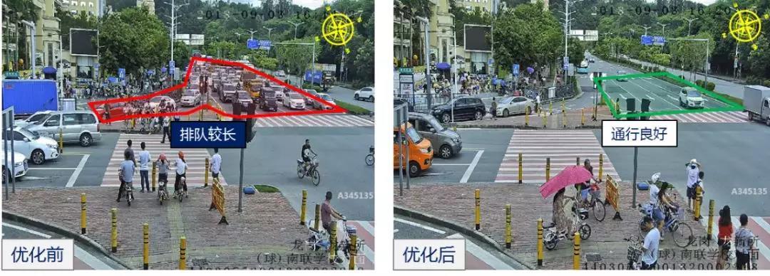臨近放學(xué)時(shí)段,龍崗區(qū)愛(ài)南/植物園路口東面車(chē)輛增多,存在擁堵情況,深圳交警立即步伐保持該路口,增加?xùn)|面放行時(shí)間,15分鐘后路口恢復(fù)正常。