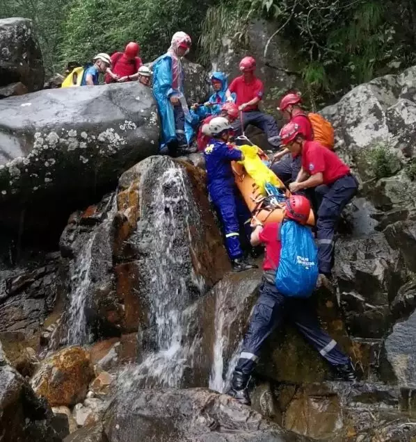 深圳藍(lán)天救援隊(duì)的2名隊(duì)友許挺秀、尹起賀,在掩護(hù)最后一批16名受困驢友撤離時(shí),突遇溪水暴漲無(wú)法直接下山,為緊急避險(xiǎn)而與大部隊(duì)脫離失聯(lián)。