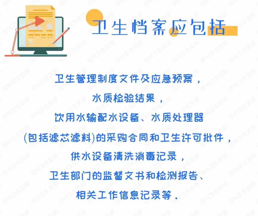 配專職/兼職人員負(fù)責(zé)飲用水衛(wèi)生管理工作,并建立飲用水衛(wèi)生檔案。