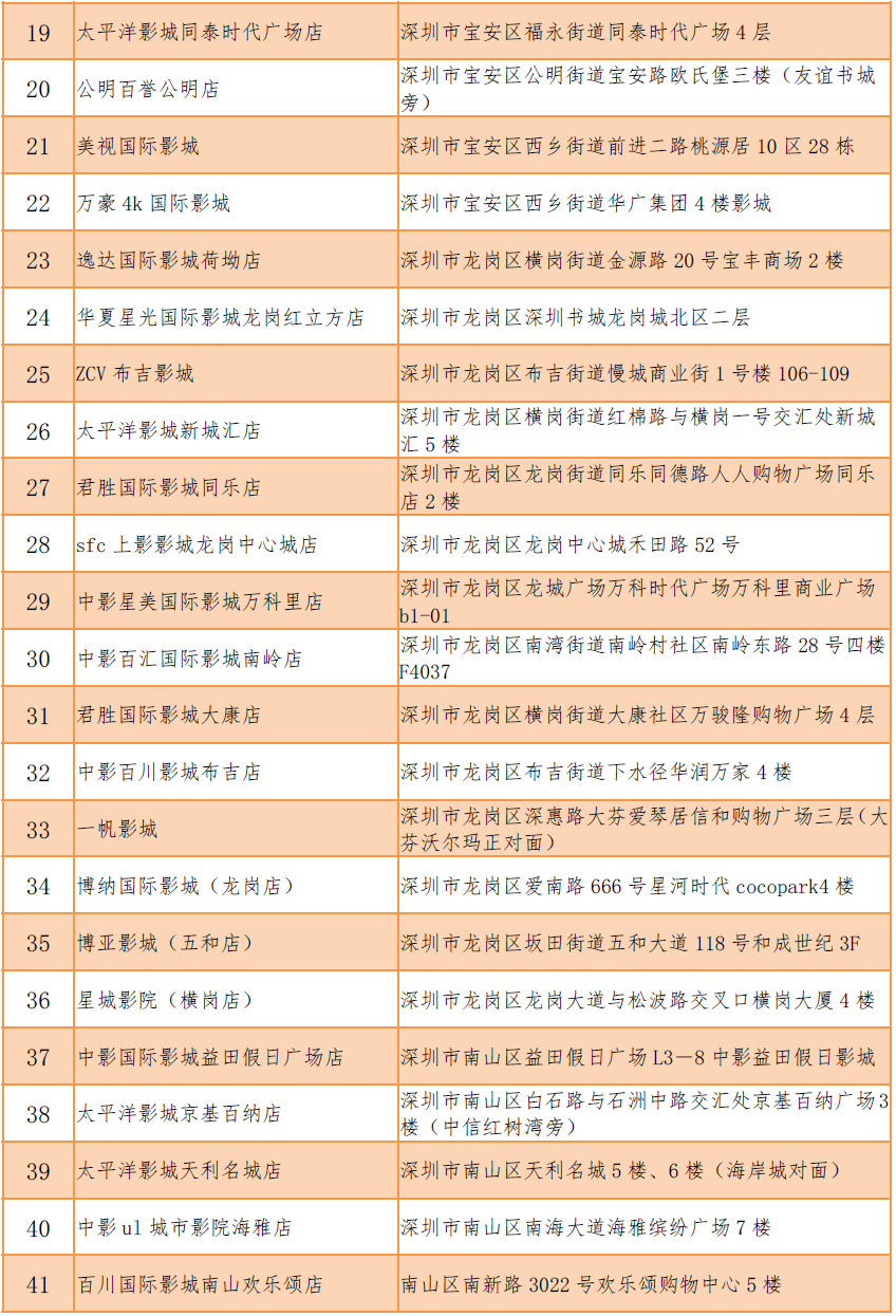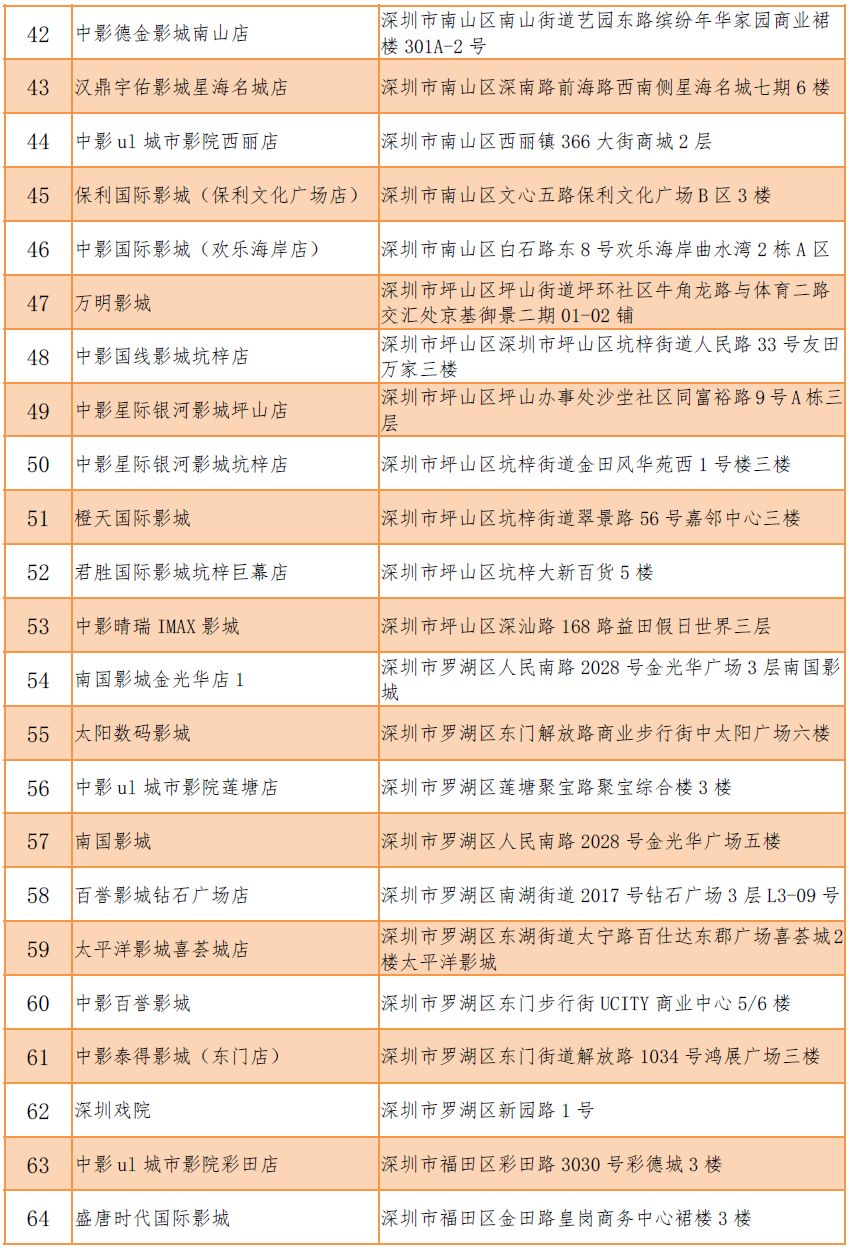 加入《電影票退改簽標準》的影院名單