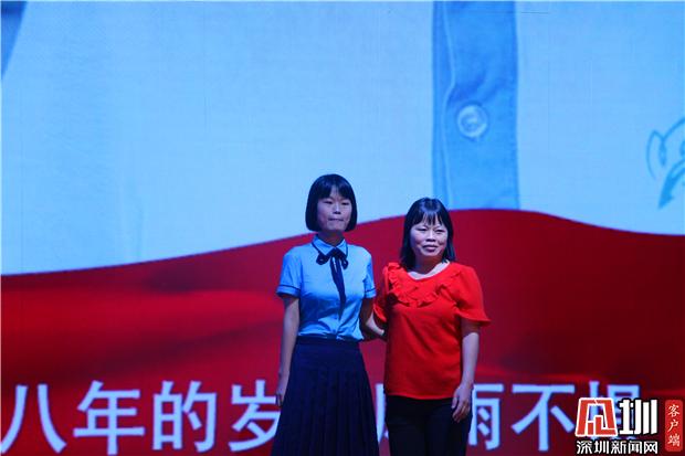 參加成人禮的學生代表及家長上臺。(見圳客戶端、深圳新聞網記者 吳梓欣 攝)
