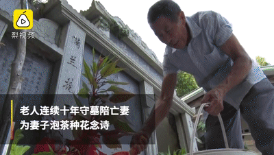 泡一杯茶放在妻子墓碑前,