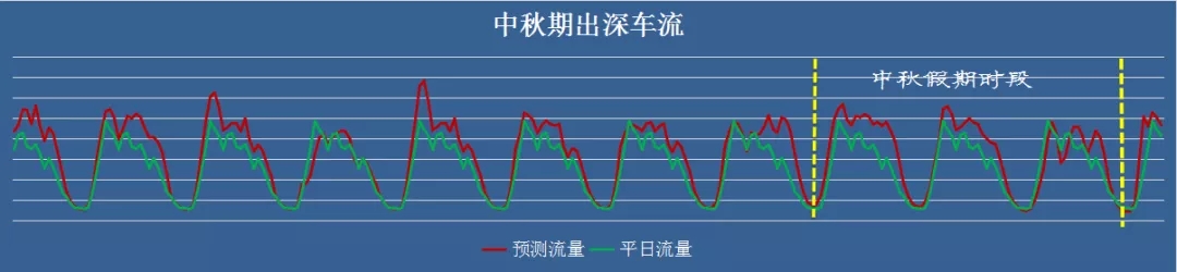 根據近三年中秋假期前夕的交通流量,結合今年深圳市道路車輛通行情況,深圳交警預計,“中秋”假期期間(假期前一日12時至假期最后一日12時),出入深車輛數均將超過150萬輛次。