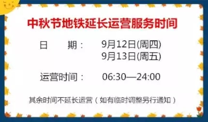 中秋節(jié)地鐵將延長運營服務(wù)時間