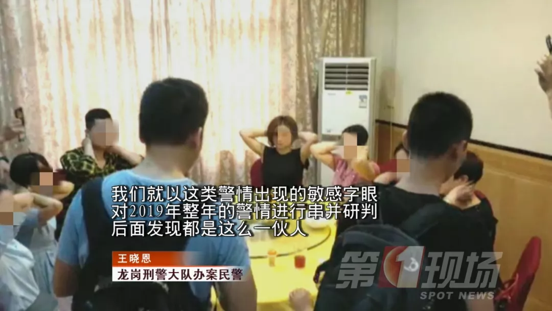 龍崗刑警大隊(duì)辦案民警王曉恩表示,我們就以這類警情出現(xiàn)的敏感字眼,還有今年的頻率,對(duì)2019年整年的警情進(jìn)行串并,進(jìn)行研判后發(fā)現(xiàn),都是這么一伙人。