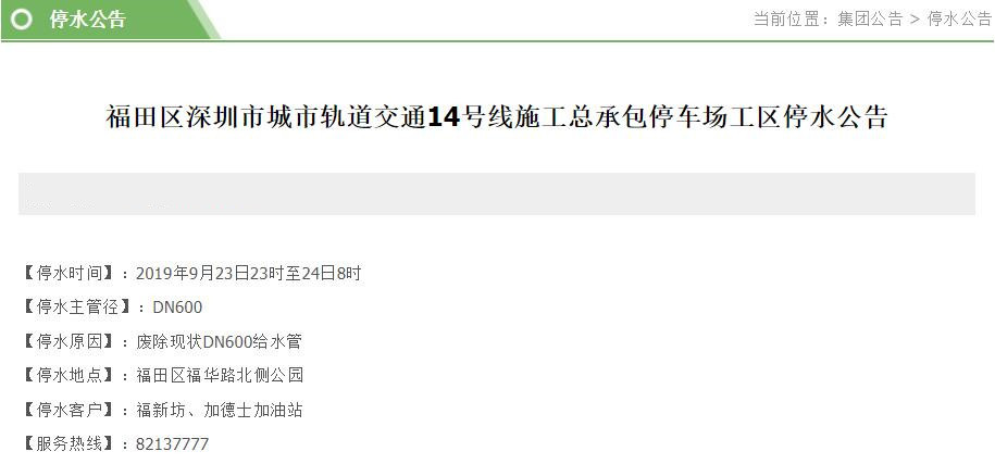 停水時(shí)間:2019年9月23日23時(shí)至24日8時(shí)