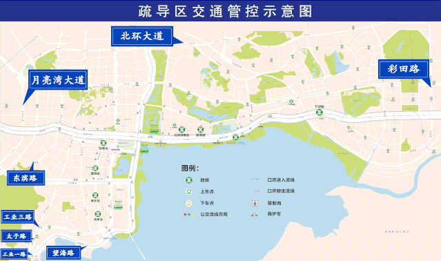 主應(yīng)急路線:人才公園-海德三道-沙河西立交-濱海大道(雙方向);