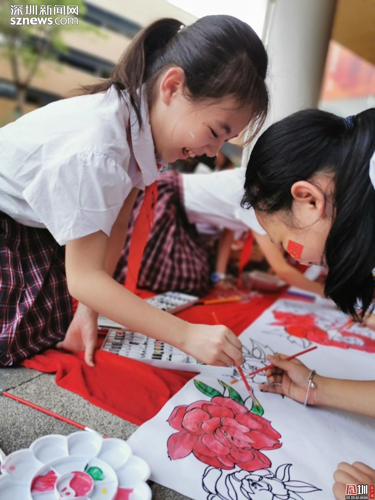 全校師生代表,在鮮紅的國(guó)旗下,共同完成手繪中國(guó)元素。這一畫,畫出天安城樓,萬(wàn)里長(zhǎng)城;那一繪,繪出似錦繁花,蓬勃朝氣。一筆一畫,畫出的是驕傲與自豪,繪出的是對(duì)祖國(guó)愛的深情。