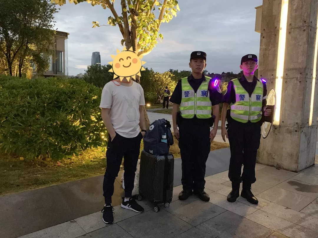 10月6日,深圳市公安局福田分局機動訓(xùn)練大隊摩托車中隊隊員楊斌、翁紹允在巡邏途中發(fā)現(xiàn)一個行李箱和一個書包無人認領(lǐng),他們便在原地等待失主,約半小時后失主前來認領(lǐng)行李,在核實失主身份后物歸原主,失主表示衷心感謝。