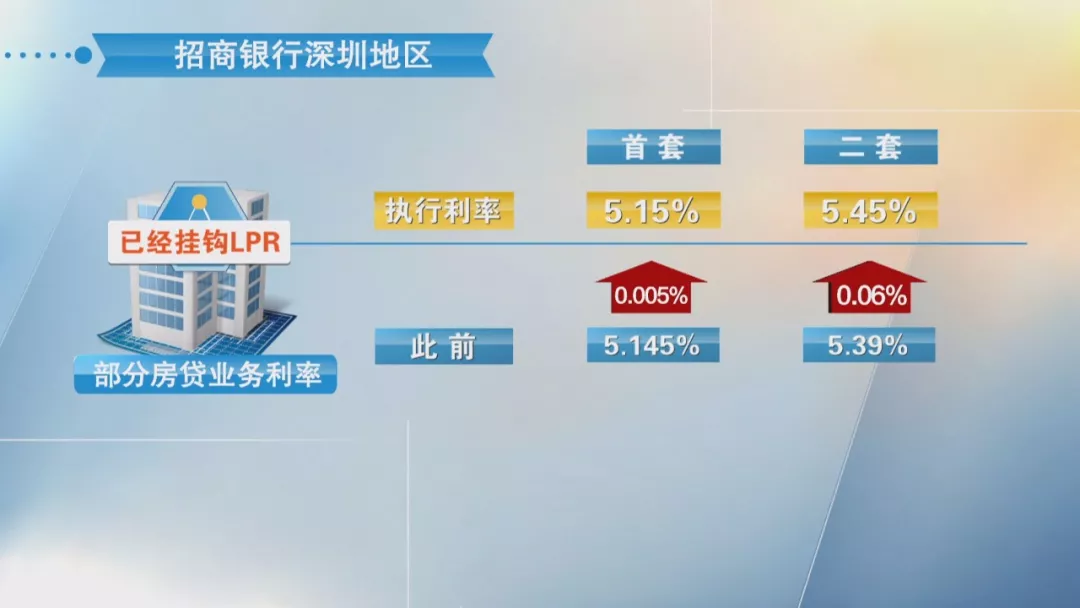 據(jù)記者了解,招商銀行在深圳地區(qū)部分房貸業(yè)務(wù)利率已經(jīng)掛鉤LPR,執(zhí)行利率為首套5.15%、二套為5.45%,此前首套為5.145%、二套為5.39%,分別上漲0.005%、0.06%。