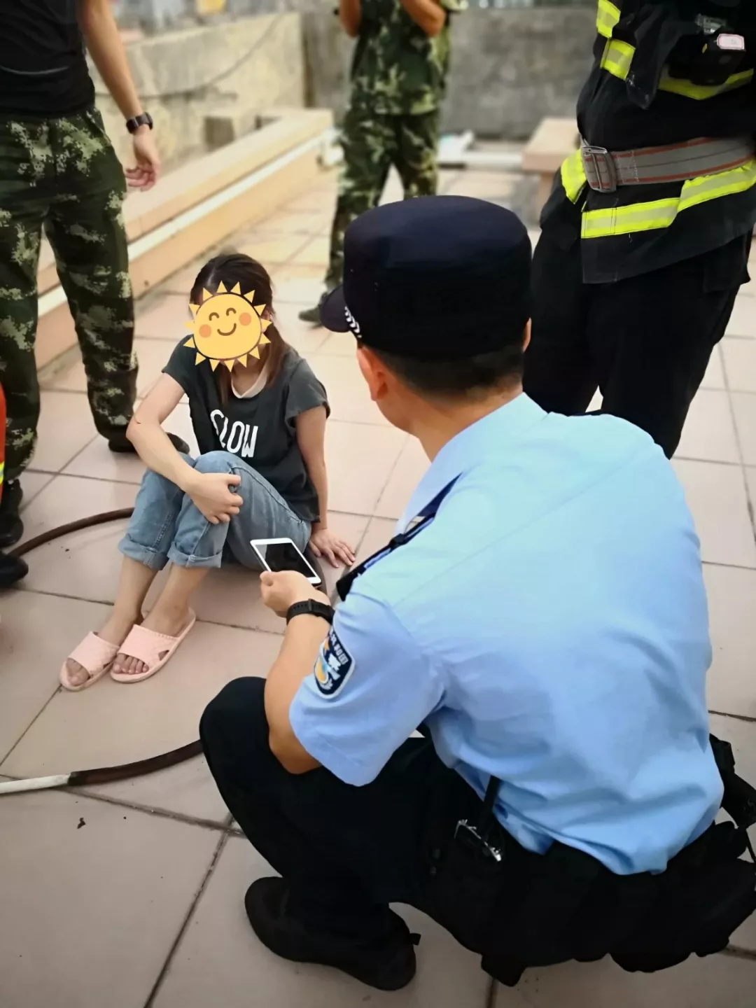 近日,深圳市公安局福田分局沙頭派出所接到群眾求助電話稱,其朋友疑似醉酒欲輕生。接警后,民警盧建明在5分鐘內(nèi)迅速趕到現(xiàn)場(chǎng),發(fā)現(xiàn)當(dāng)事人梁女士坐在樓頂圍墻上啼哭,多次嘗試與梁女士溝通后都沒(méi)有得到回復(fù)。但梁女士對(duì)盧建明很是信任,把手機(jī)信息給盧建明查看。盧建明得知梁女士因感情受挫產(chǎn)生輕生想法,撥打其男友電話卻始終聯(lián)系不上。盧建明擔(dān)心其長(zhǎng)時(shí)間哭泣身體承受不住,容易發(fā)生意外,便采取強(qiáng)制救助措施。自己在前與梁女士交談分散她的注意力,安排隊(duì)員從后面將她救助到安全地方,并將她帶到社區(qū)工作站,在耐心的交談中解開她的心結(jié),讓她放下包袱,重新生活。