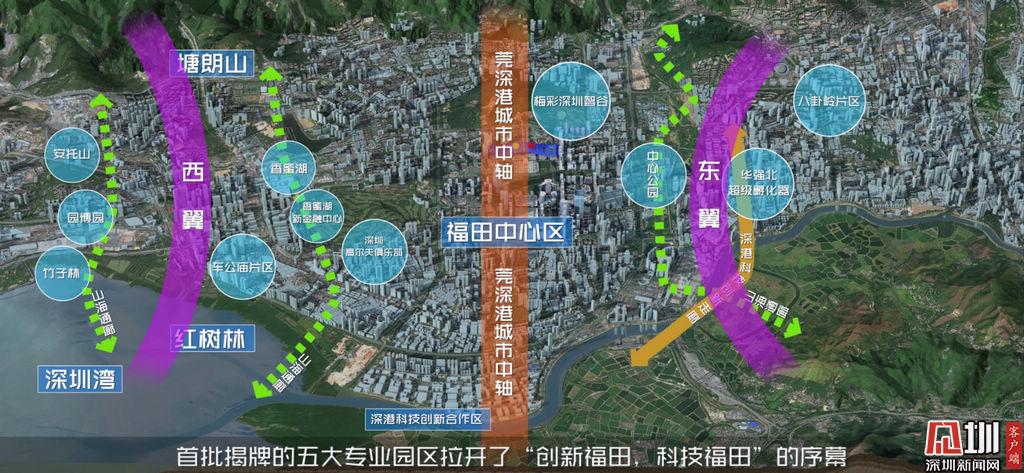 隨著大屏幕上的光束從市民中心出發(fā),依次穿過(guò)1個(gè)主會(huì)場(chǎng)、4個(gè)分會(huì)場(chǎng),福田正式啟用了新一代信息技術(shù)產(chǎn)業(yè)園、深港國(guó)際科技園(廣田國(guó)際中心)、國(guó)際生物醫(yī)藥產(chǎn)業(yè)園、灣區(qū)國(guó)際金融科技城4個(gè)專(zhuān)業(yè)科技園區(qū),將與稍后啟用的國(guó)際量子研究中心、已經(jīng)開(kāi)放的華強(qiáng)北5G應(yīng)用體驗(yàn)街區(qū),共同形成“五園一街”的科技創(chuàng)新發(fā)展新格局。如果把深港科技創(chuàng)新合作區(qū)、香蜜湖新金融中心比作兩大核心引擎,“五園一街”無(wú)疑為之注入了無(wú)限的創(chuàng)新動(dòng)能。
