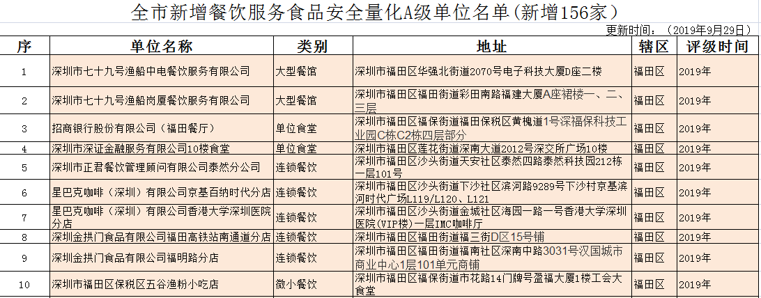 深圳新增156家A級(jí)餐飲單位,另有 ...