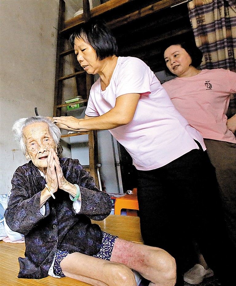 陳汝金老人喜歡打本地花牌,打到了99歲,后來腰部退化,不能久坐,她才沒有再打花牌。吃飯方面,陳汝金也有自己的主張,不求好不求貴,簡簡單單活到老,“外婆以前是生產(chǎn)隊的炊事員,直到去年她還能自己做飯呢。”在文小姐看來,如此長壽的外婆也沒有特別的養(yǎng)生之道,“保持好心態(tài),順其自然就是最長壽的秘方。”