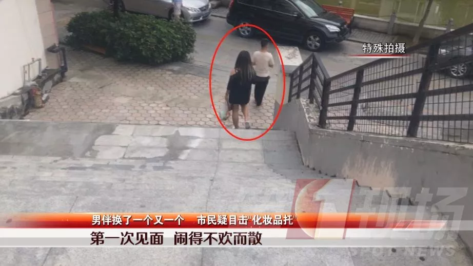 短短1個(gè)小時(shí)內(nèi),這名女子就約了3名男子在化妝品店購(gòu)物,不過(guò)這家門店的業(yè)務(wù)量可不僅僅如此。記者注意到,另一名黑衣女子,也在做著同樣的動(dòng)作,帶不同的男性進(jìn)入店內(nèi)買化妝品。