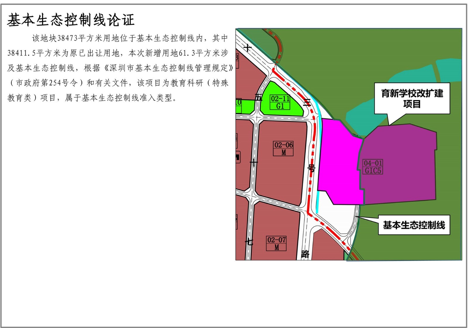 深圳市育新學(xué)校位于光明街道碧眼社區(qū),規(guī)劃觀光路(現(xiàn)狀已建)和二十三號路(現(xiàn)狀已建)交叉口西北側(cè)。為消除校園消防、交通出行安全隱患,滿足規(guī)范需求,新增學(xué)校用地1550平方米,以解決消防、交通需求,并結(jié)合周邊道路線形優(yōu)化西側(cè)邊界,學(xué)??傆玫孛娣e由58395平方米調(diào)整為59945平方米,學(xué)校用地南側(cè)新增一條紅線寬12米市政道路,道路用地面積1352平方米。