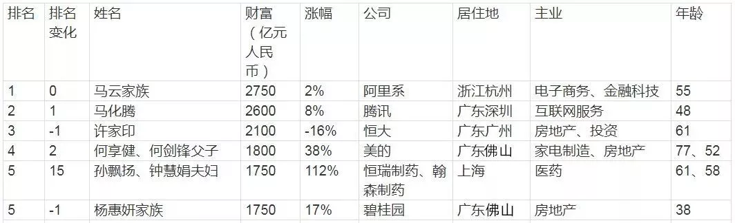 楊惠妍家族與孫飄揚(yáng)、鐘慧娟夫婦并列第5位