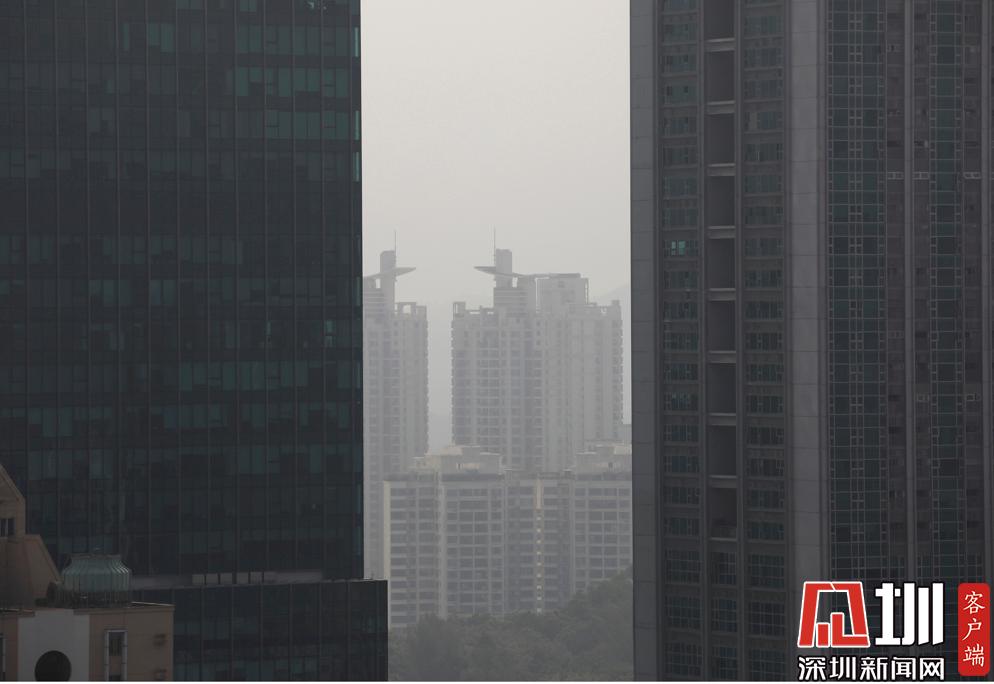 早上9點到10點,福田區(qū)上空呈現(xiàn)灰色。