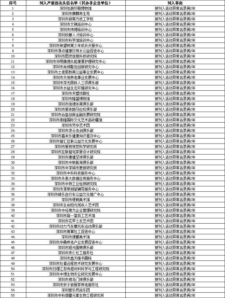 深圳市民政局公布一批嚴(yán)重違法失信名單