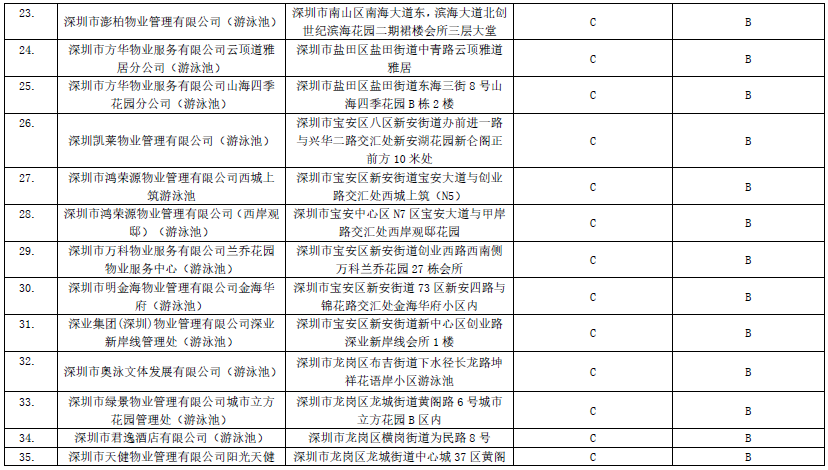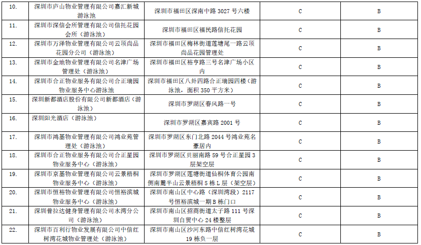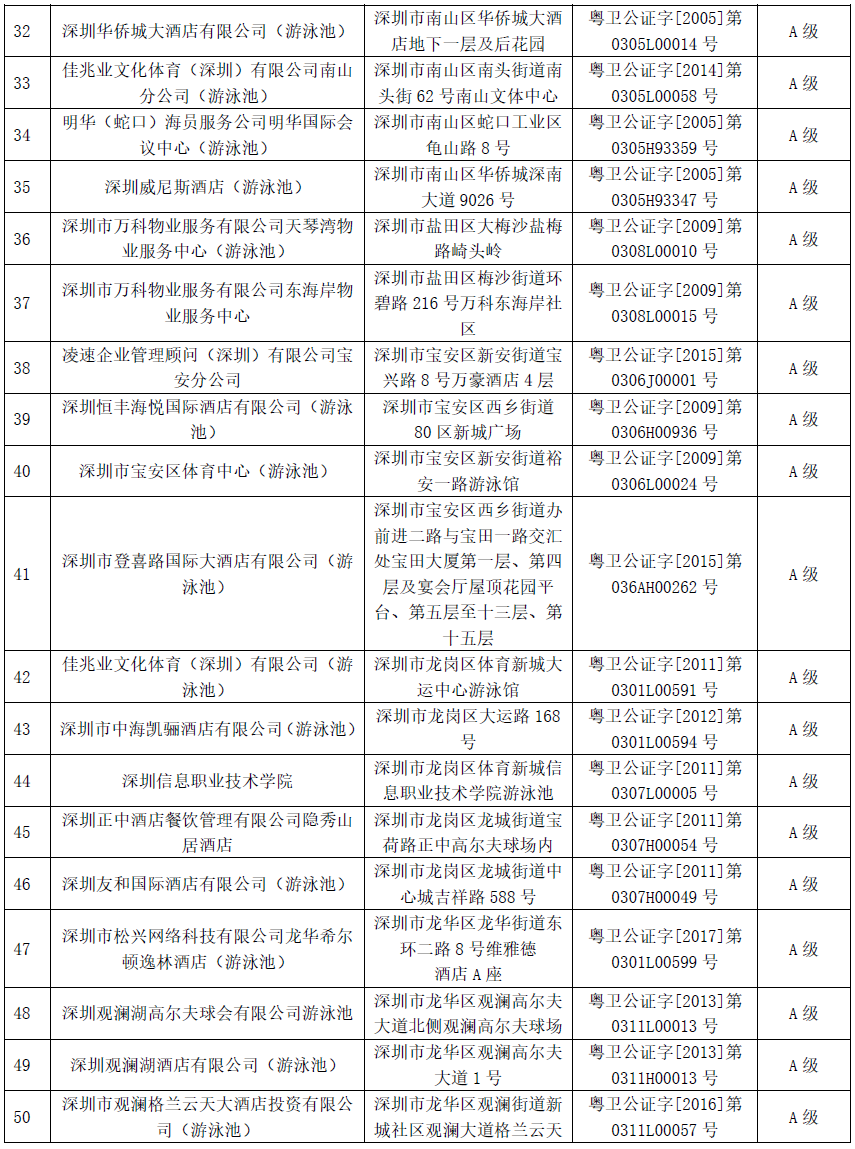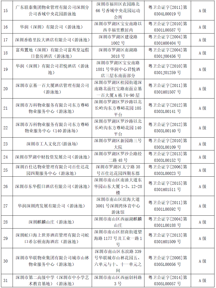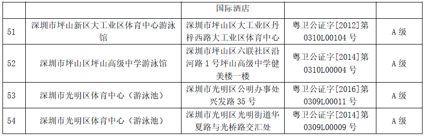 附:2019年深圳市游泳場(chǎng)所衛(wèi)生信譽(yù)度等級(jí)A級(jí)名單