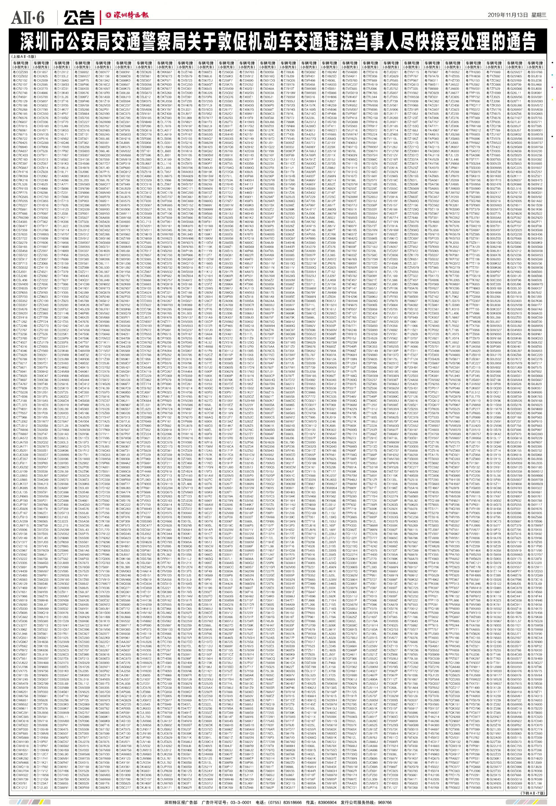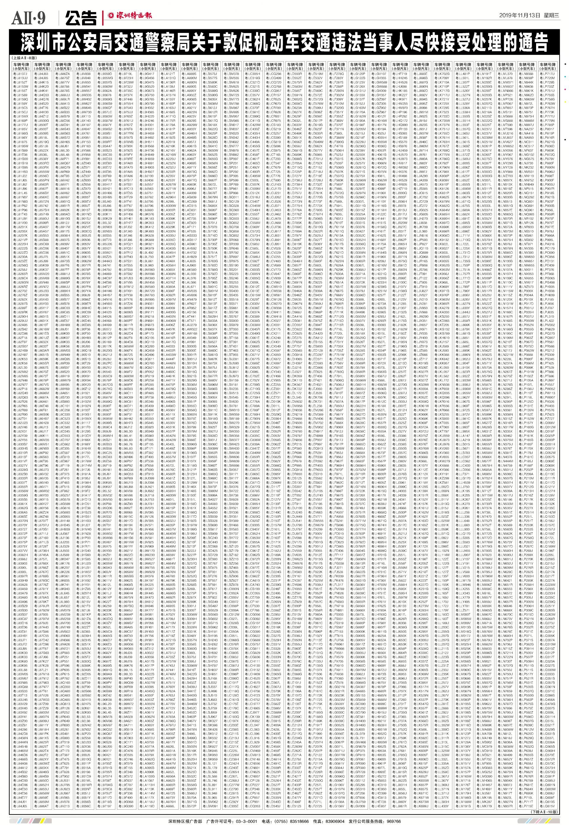 今年7月至10月初,全市機(jī)動車被“電子警察”抓拍交通違法行為1342781宗,深圳交警通過多種方式進(jìn)行交通違法行為告知,但截止至目前仍有部分機(jī)動車的非現(xiàn)場交通違法未及時處理。
