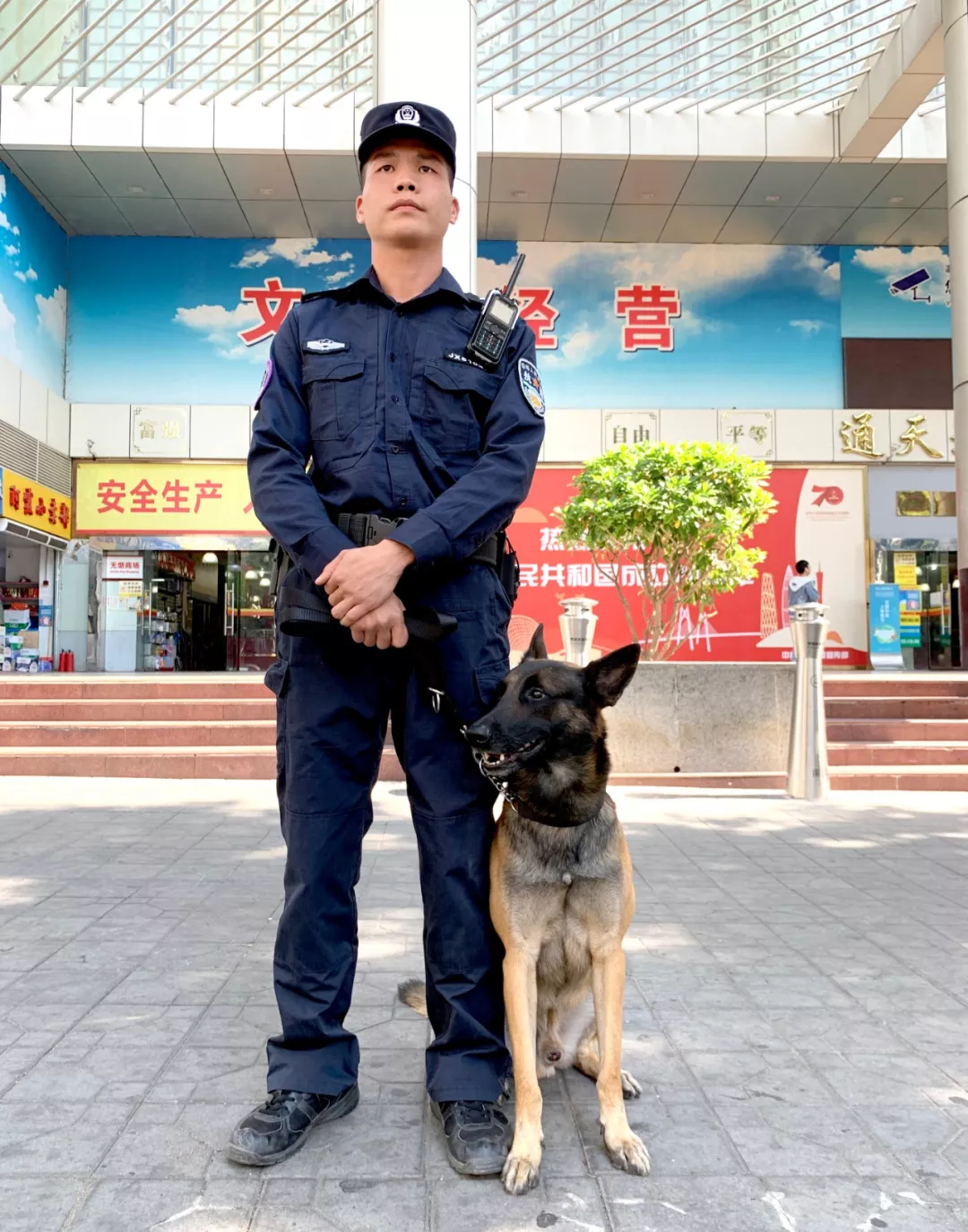 1999年出生、剛滿20歲的岳文健,是福田分局機(jī)訓(xùn)大隊(duì)警犬中隊(duì)的一員。去年剛畢業(yè)的他,在今年3月加入警犬中隊(duì),成為隊(duì)伍中最小的隊(duì)員。