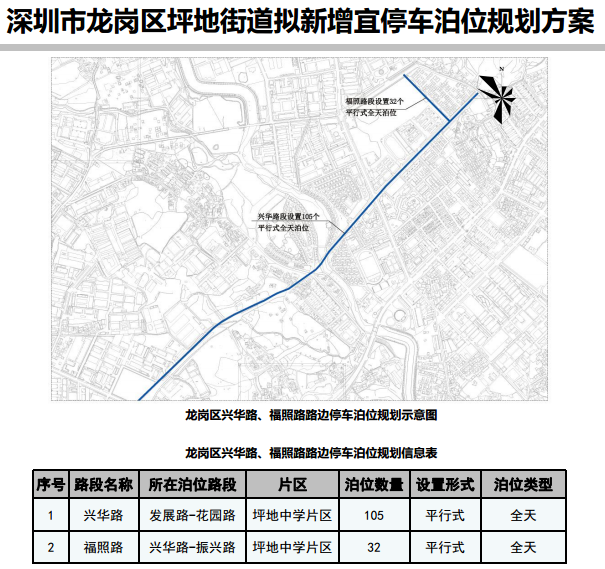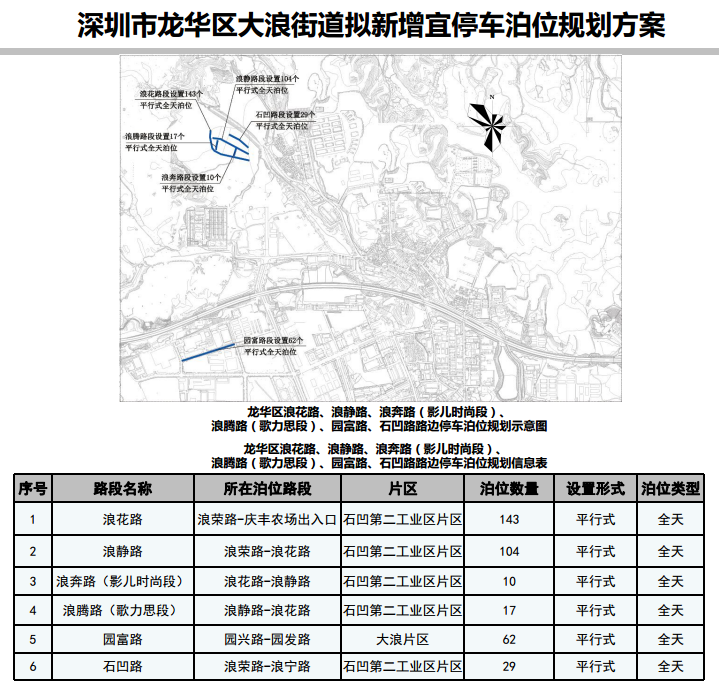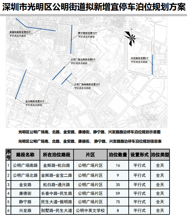 其中,在寶安區(qū)3條道路新增316個宜停車泊位、龍崗區(qū)23條道路新增890個宜停車泊位、龍華區(qū)14條道路新增702個宜停車泊位、光明區(qū)9條道路新增305個宜停車泊位、大鵬新區(qū)5條道路新增157個宜停車泊位。具體規(guī)劃方案如下: